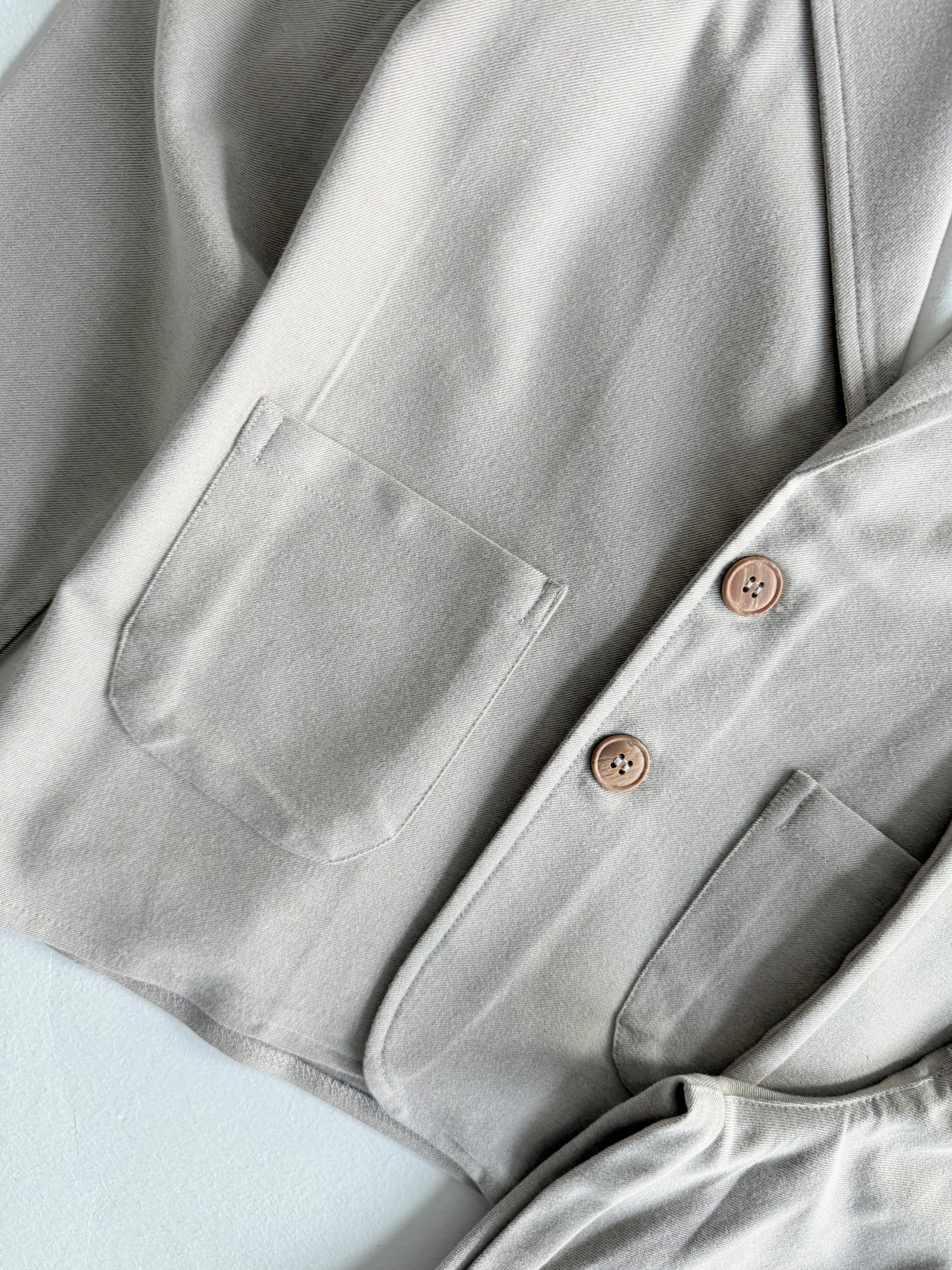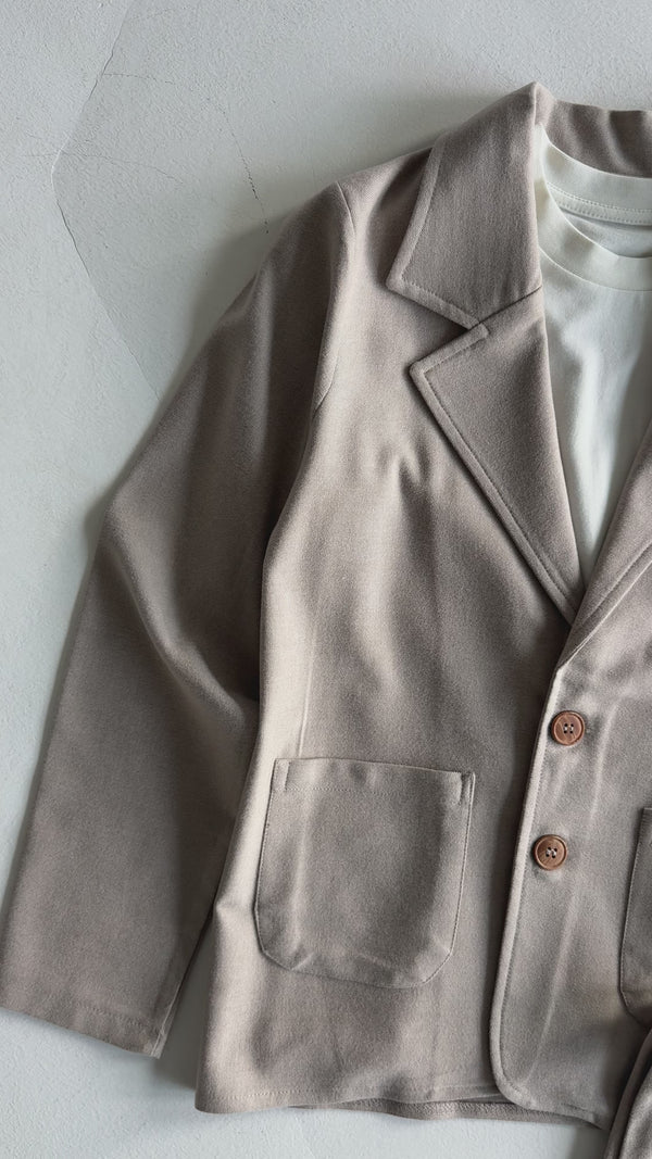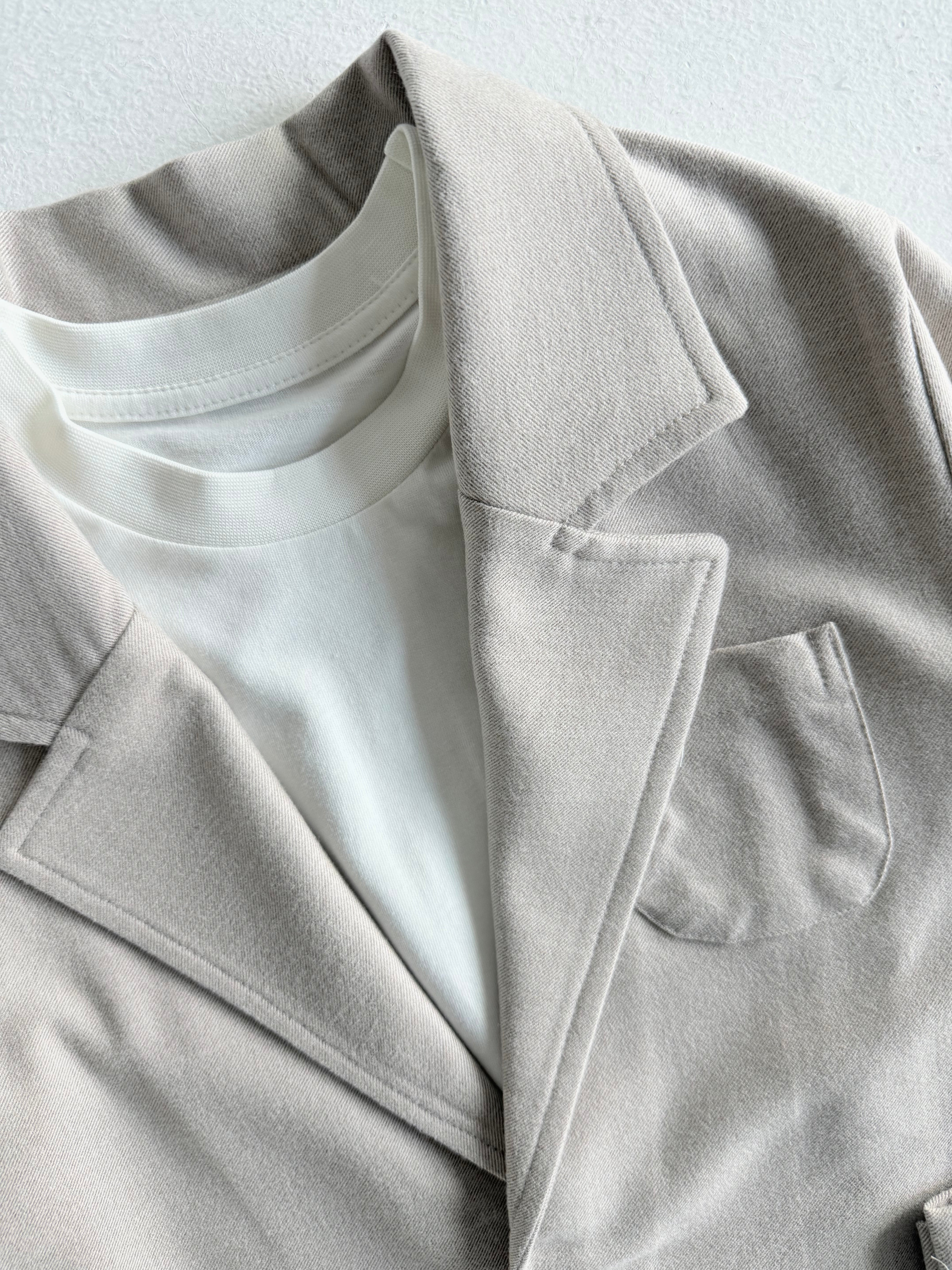 • Комплект из трёх предметов: Этот комплект для мальчика, состоящий из куртки, брюк и футболки, — практичное решение для семей, которые ищут готовые детские наряды. Дополните его простой белой футболкой, чтобы создать непринуждённый и элегантный образ.