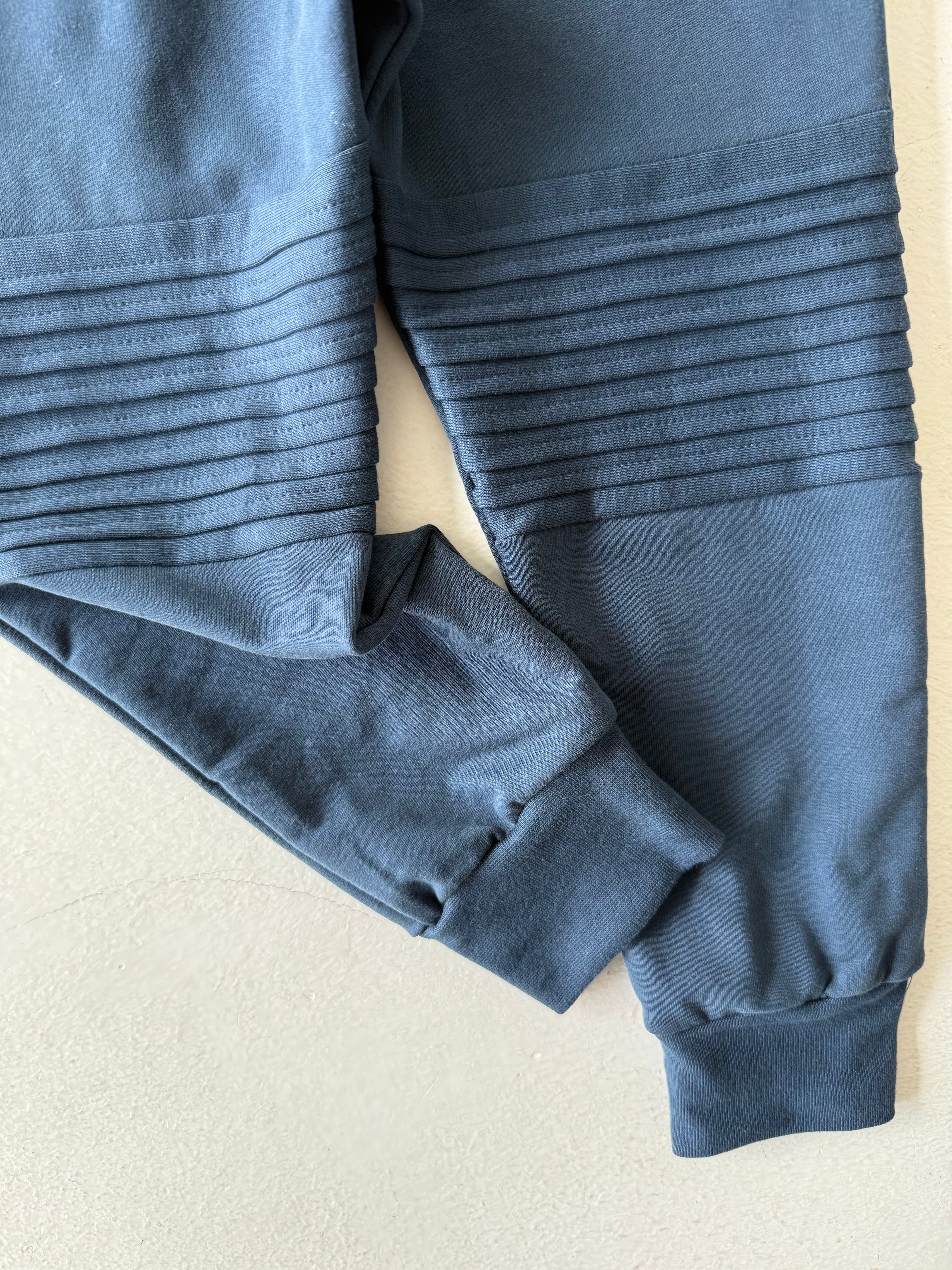 Этот спортивный костюм привлекает внимание своим простым и спортивным дизайном. Ребристые края и эластичная деталь на талии придадут вашему ребенку современный вид. Темно-синий цвет подходит ко всем видам сочетаний. Его можно использовать как в повседневной жизни, так и во время занятий спортом.