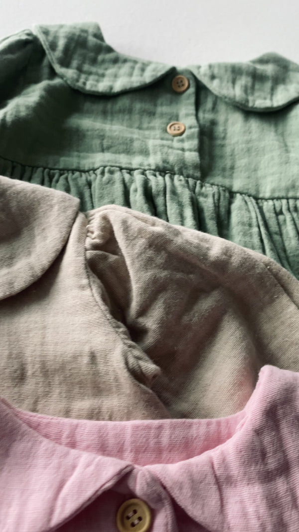 Подходит на все случаи жизни: это детское платье с воротником из 100% муслина идеально подходит для летней повседневной одежды, вечеринок по случаю дня рождения или семейных встреч. Удобный и стильный, он станет незаменимой частью гардероба вашего малыша.