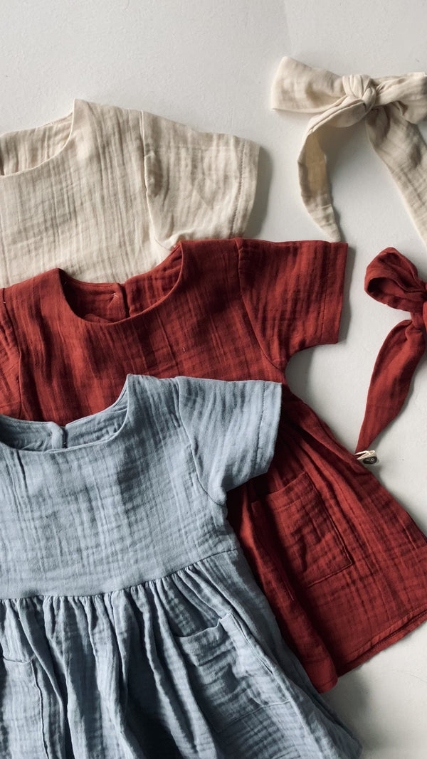 Детское платье с воротником и повязка на голову из 100% органического муслина
