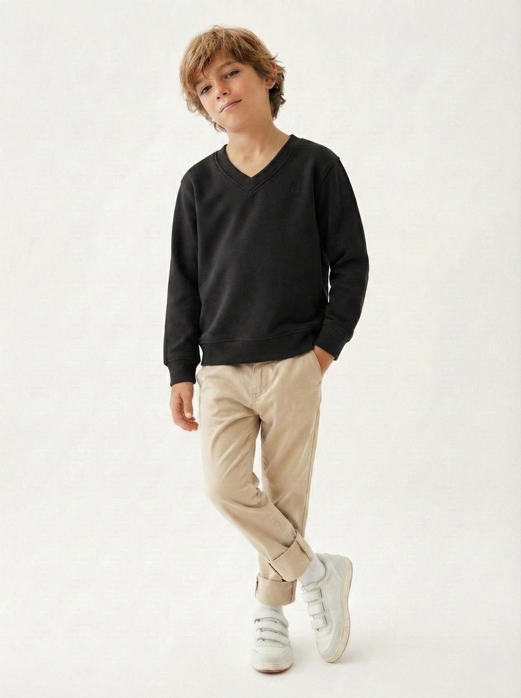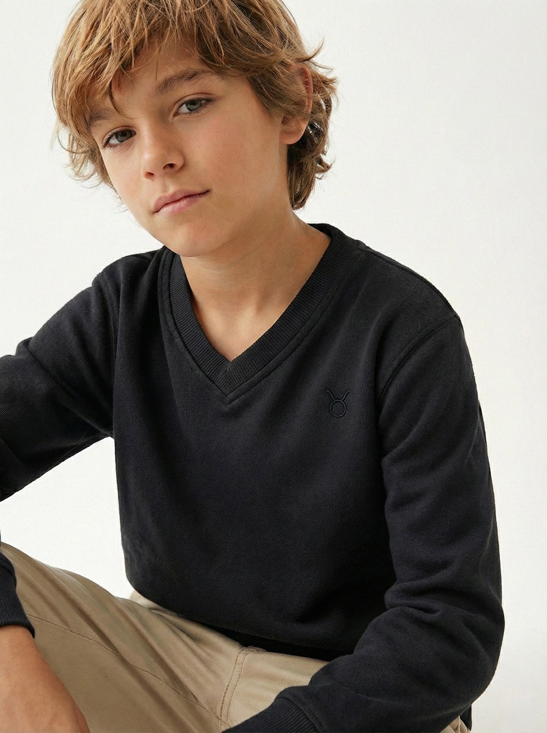 - Элегантность и стильность: деталь с V-образным вырезом придает толстовке элегантный вид и отражает стиль вашего ребенка.