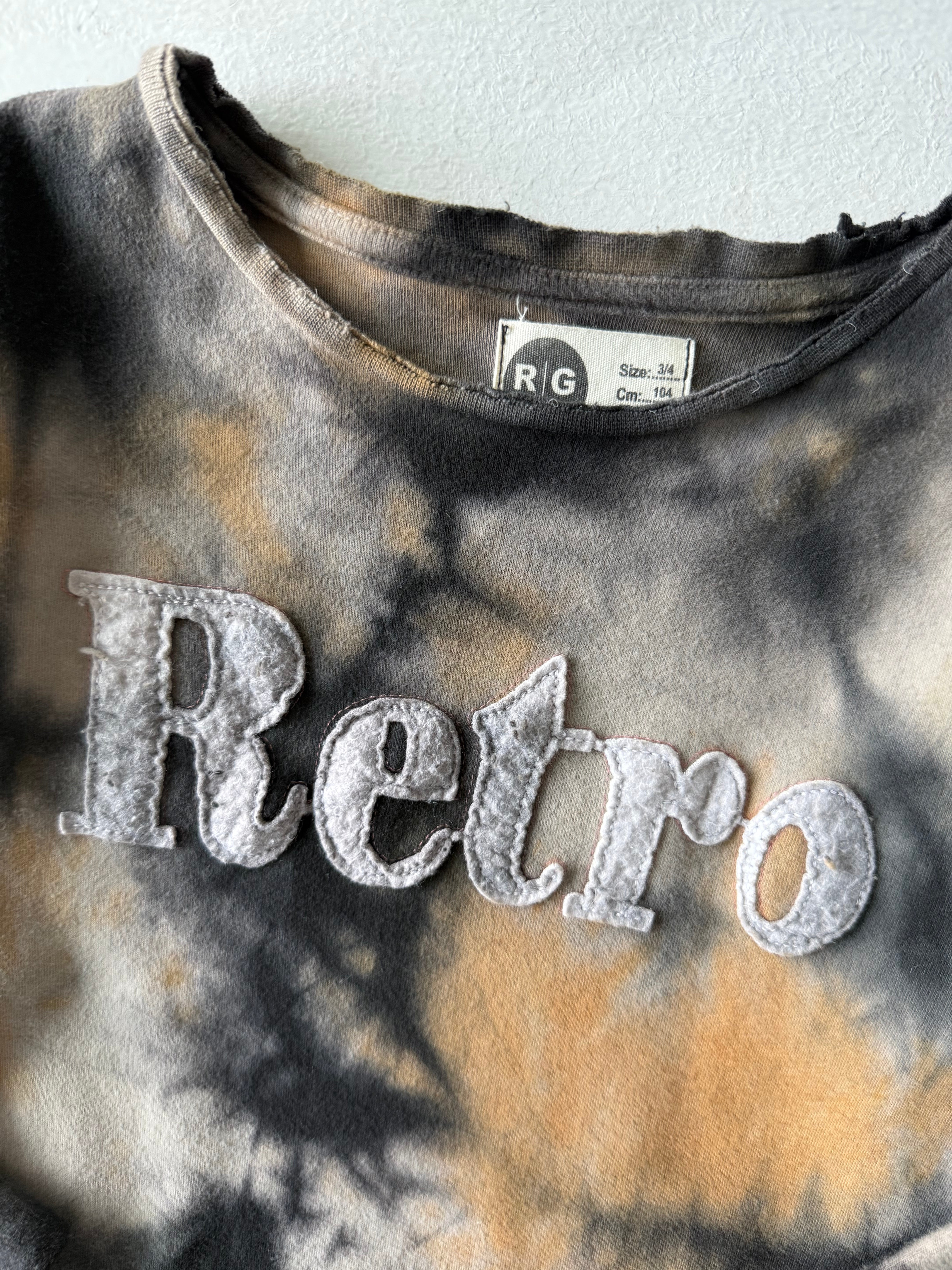 Это уникальное платье для девочек добавит современный и винтажный штрих в гардероб как девочек, так и мальчиков. Платье, рассчитанное на детей 3-4 -8-9 лет, привлекает внимание уникальными узорами, полученными в технике росписи батик, и надписью «Ретро» спереди.